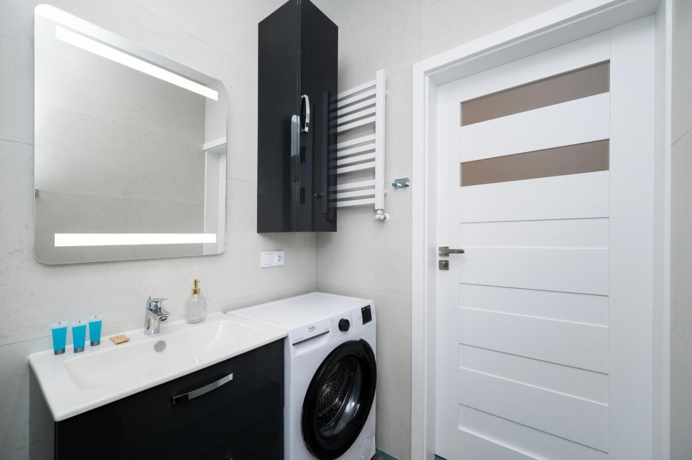 Studio. The studio features a private bathroom, a washing machine, a private entrance, as well as a seating area with a flat-screen TV. The well-equipped kitchenette has a stovetop, a refrigerator, a dishwasher and kitchenware. The studio provides a dining area, an electric kettle, a sofa, heating, as well as a TV. The unit offers 2 beds. Studio - 3 osobowy. Powierzchnia pokoju ok.: 42 mkw.