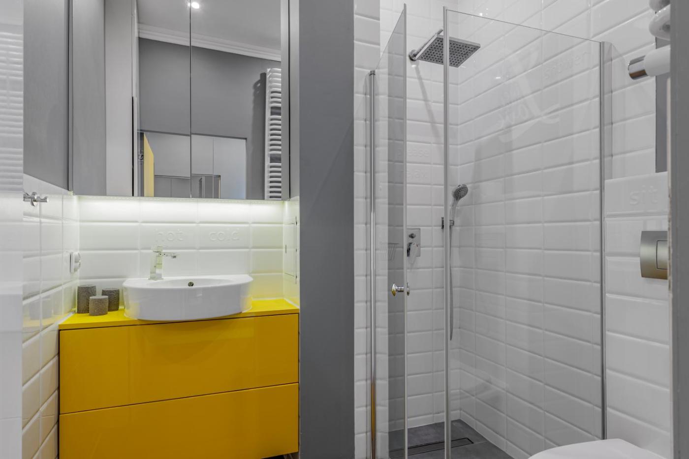 Apartament z 1 sypialnią. This apartment includes 1 living room, 1 separate bedroom and 1 bathroom with a shower and free toiletries. The well-equipped kitchen has a stovetop, a refrigerator, a dishwasher and kitchenware. The air-conditioned apartment offers a flat-screen TV with streaming services, a washing machine, a tea and coffee maker, a seating area as well as city views. The unit has 2 beds. Apartament - 4 osobowy. Powierzchnia pokoju ok.: 49 mkw.
